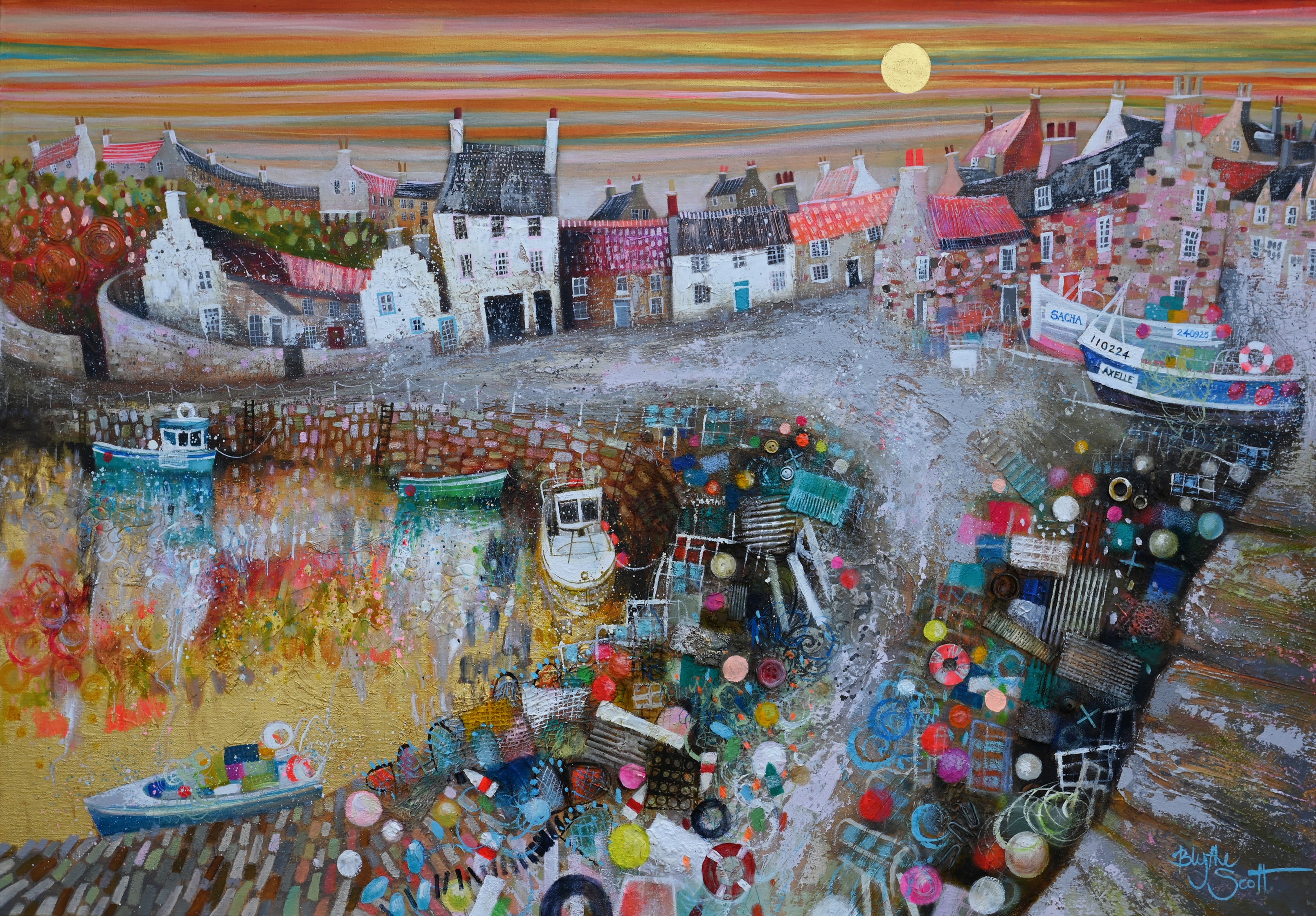 Blythe Scott is a Scottish born and trained artist, who has lived and exhibited in many countries. She now works from her studio in Melrose in the Scottish Borders where she creates uplifting mixed media art inspired by Scotland's cities, coastlines and countryside. Her vibrant paintings are characterised by harmonious colour, a sense of movement, intriguing textures and a fearless, expressive approach to drawing.