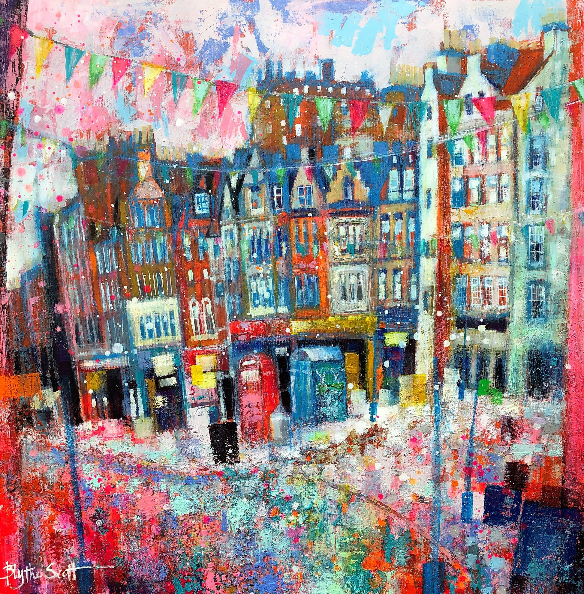 This jaunty cityscape was inspired by Edinburgh's Grassmarket.