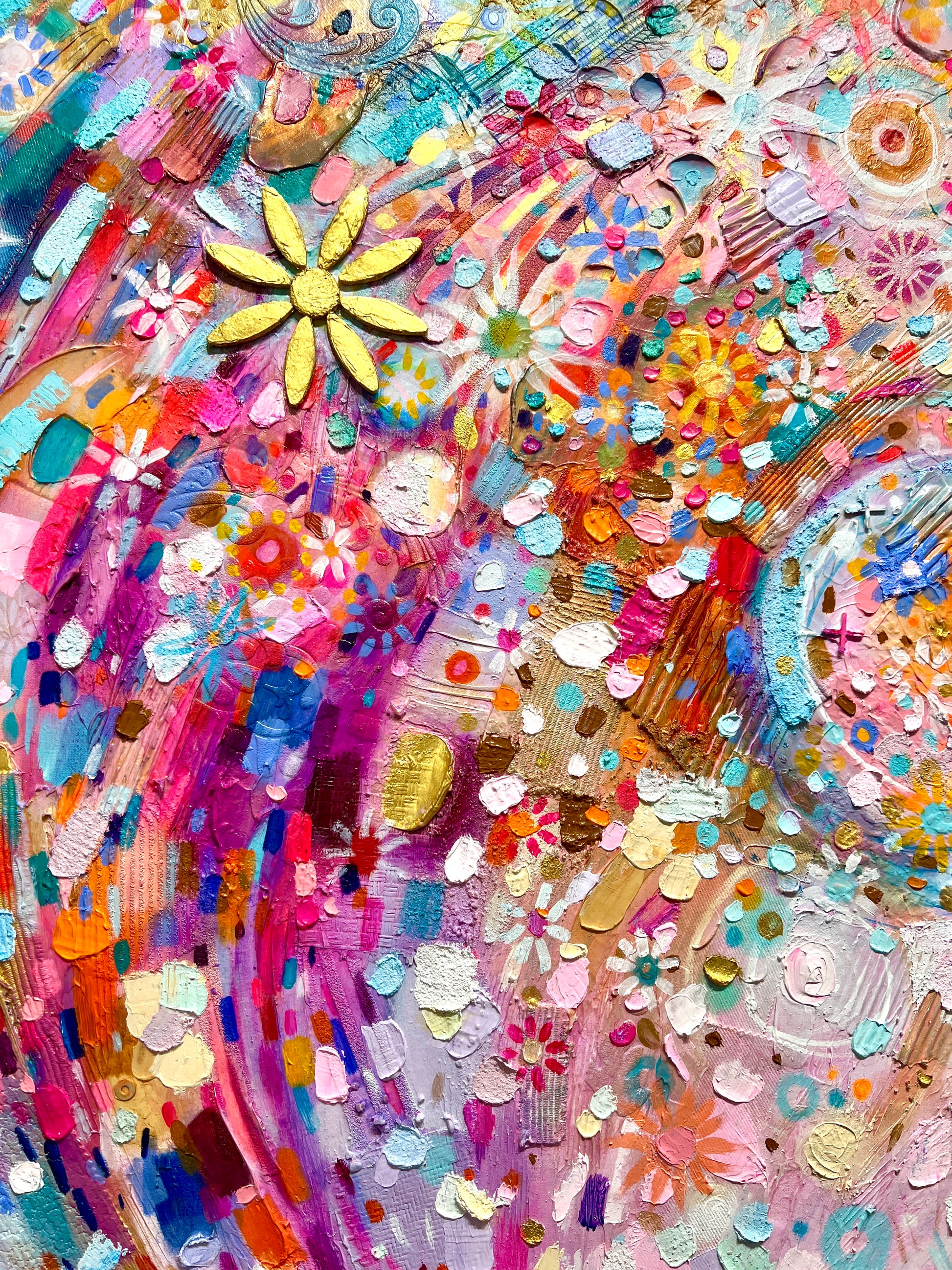 This is a very large scale mixed media painting inspired by fireworks over Edinburgh Castle. It was the title piece of my recent solo show by the same name. It is all about unbridled joy, exuberance and positivity.